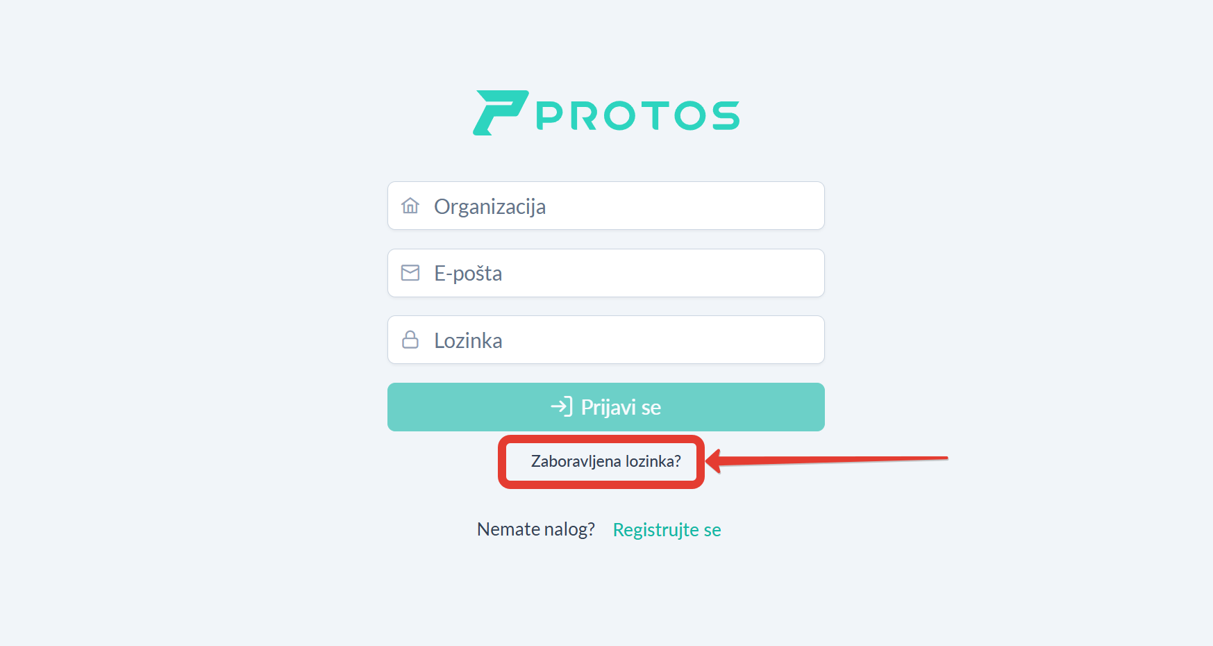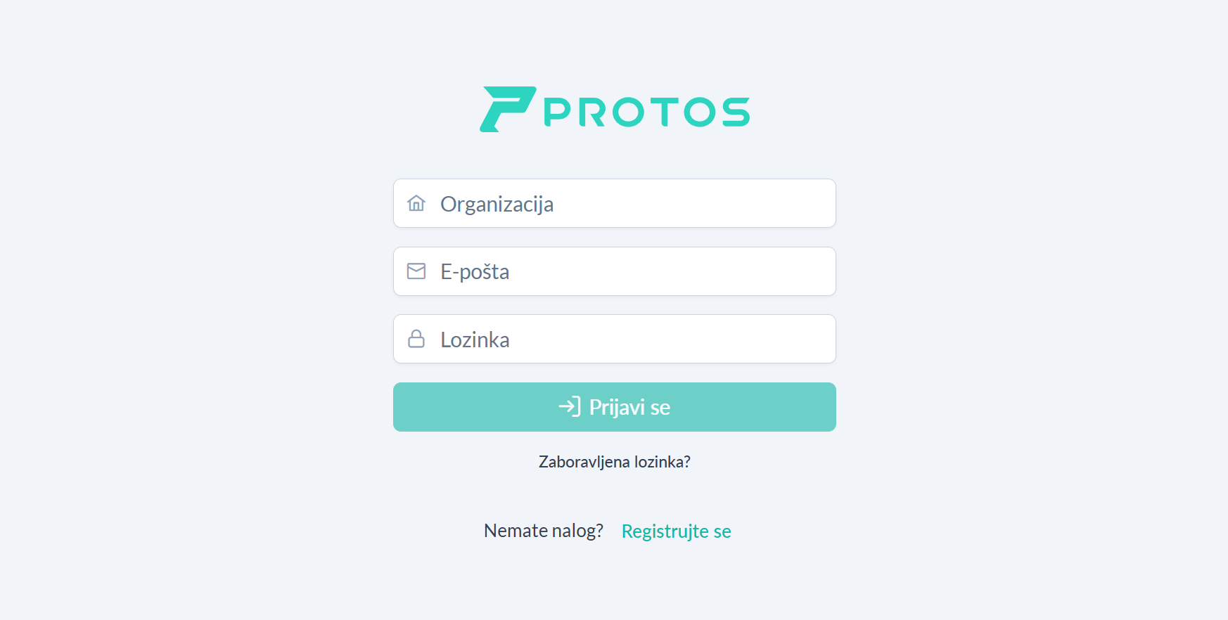 Otvaranjem PROTOS stranice u web browseru (Google Chrome, Mozila Firefox, Yandex Browser, Microsoft Edge, Apple Safari) prikazuje se forma za prijavljivanje.