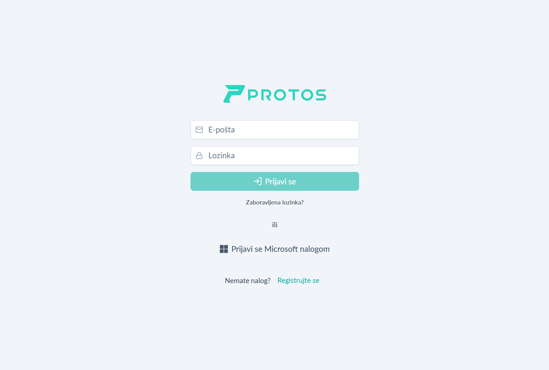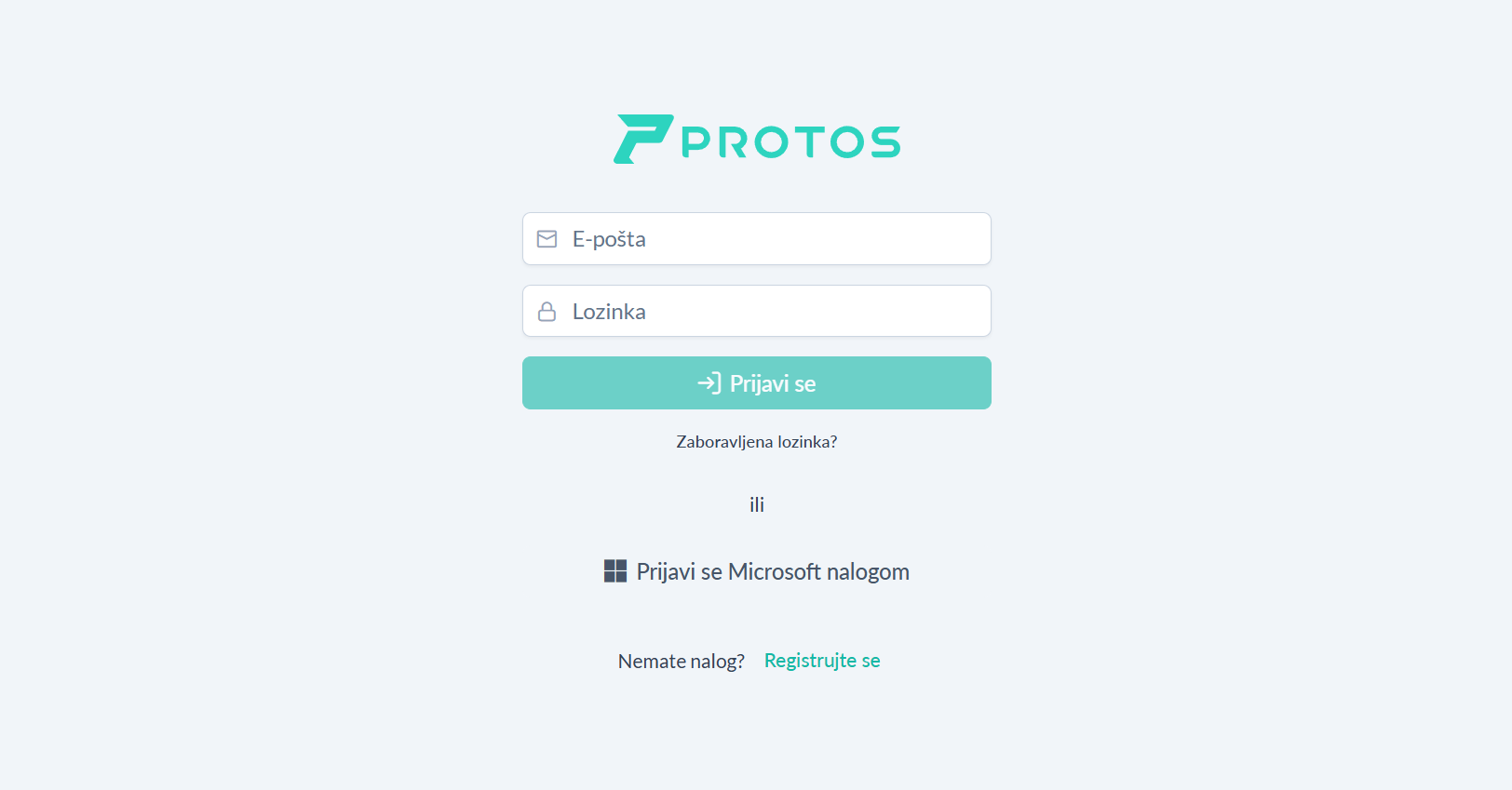 Prijava Microsoft nalogom omogućena je samo za određene firme, odnosno za firme kod kojih je ovaj način prijave podešen i za koje je PROTOS registrovan kao sigurna aplikacija na korporativnom Azure portalu.